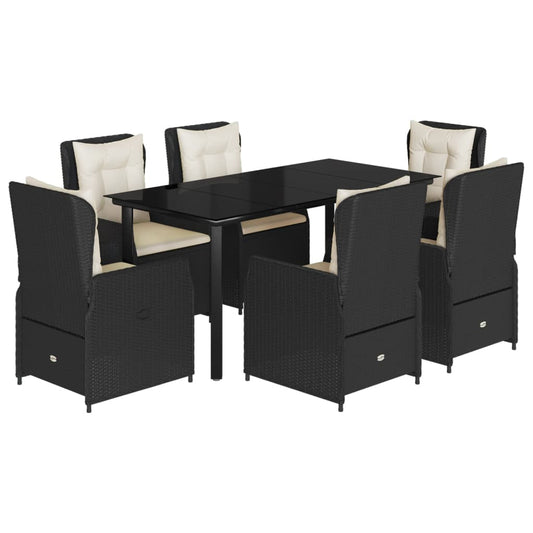 Set da Pranzo da Giardino 7 pz Nero con Cuscini in Polyrattan