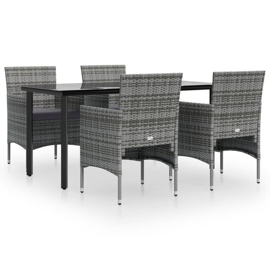 Set da Pranzo da Giardino 5 pz con Cuscini in Polyrattan Grigio
