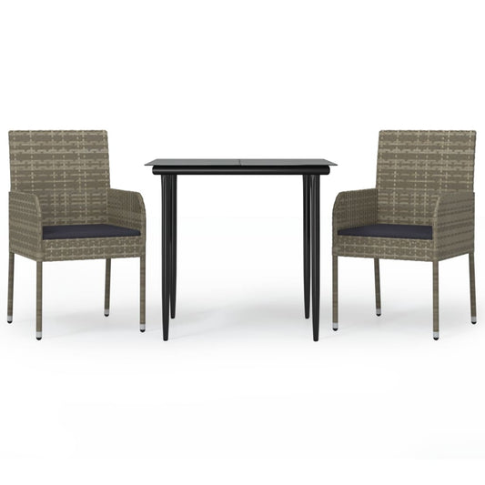 Set da Pranzo da Giardino 3 pz con Cuscini in Polyrattan Grigio