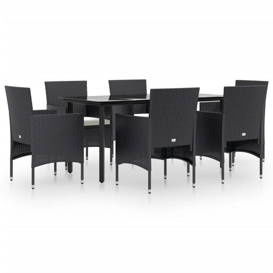 Set da Pranzo da Giardino 7 pz con Cuscini Nero