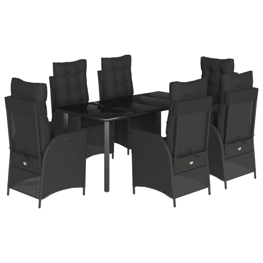 Set da Pranzo da Giardino 7 pz Nero con Cuscini in Polyrattan