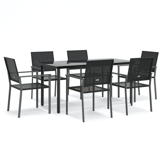 Set da Pranzo da Giardino 7 pz con Cuscini Nero