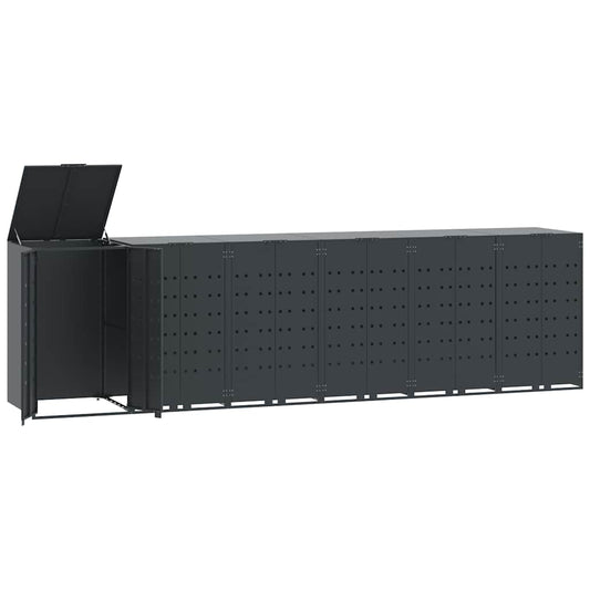 Copribidone con Ruote 4 Bidoni Antracite 276x79x117cm Acciaio