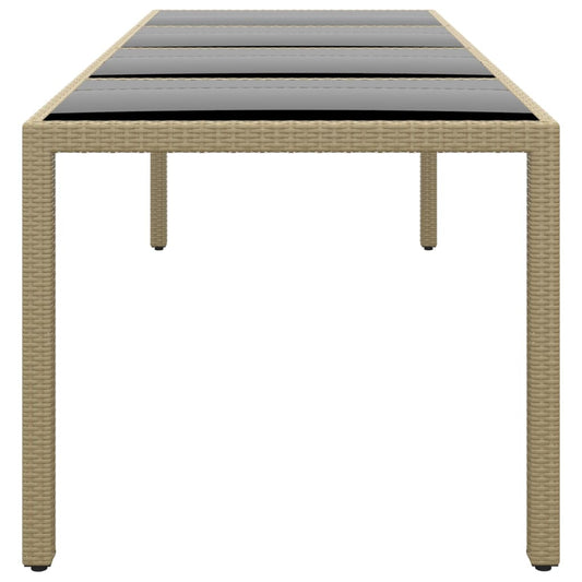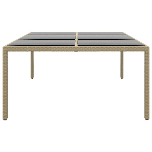 Garden Table 200x150x75 cm Tempered Glass Polyrattan Beige