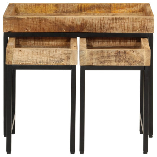 Tavolini a Incastro 3 pz Legno Massello di Mango Grezzo e Ferro