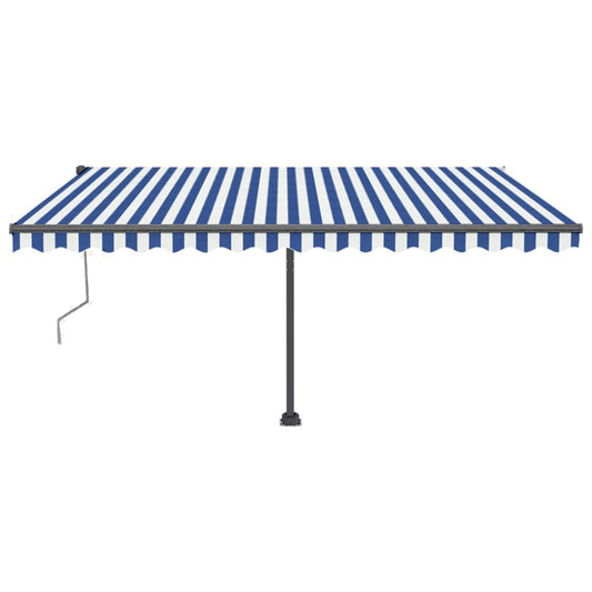 Tenda da Sole Retrattile Manuale con LED 500x300cm Blu e Bianca