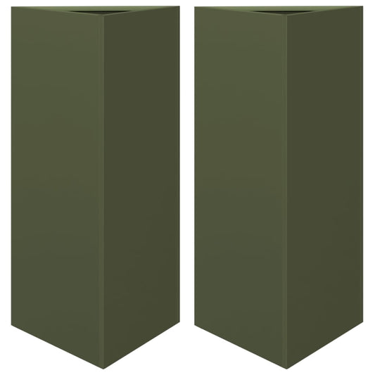 Fioriere 2 pz Verde Oliva Triangolari 40x34,5x70 cm in Acciaio