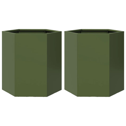 Fioriere da Giardino 2pz Verde Oliva Esagono 46x40x45cm Acciaio