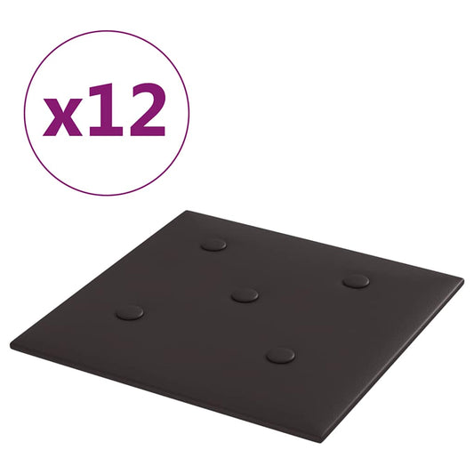 Wall Panels 12 pcs Brown 30x30 cm Imitation leather 1.08 m²