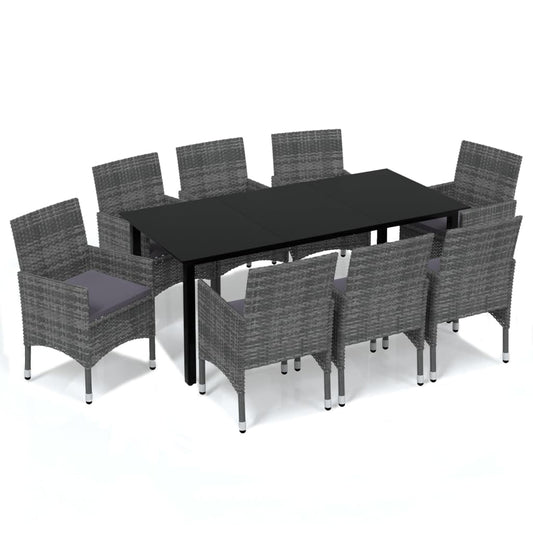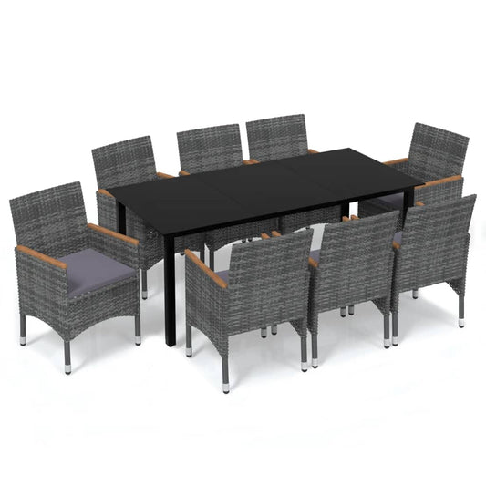 9-piece Garden Dining Set with Gray Polyrattan Cushions