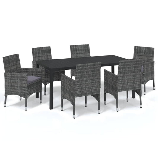 7 pc Garden Dining Set with Gray Polyrattan Cushions