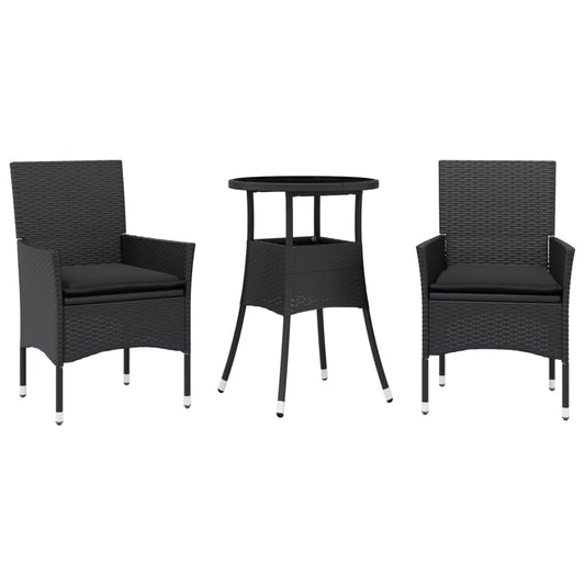 Set da Pranzo da Giardino 3pz con Cuscini Polyrattan e Vetro