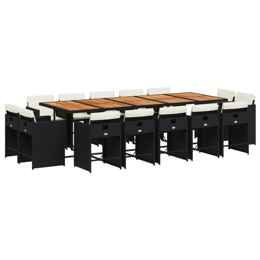 15 pc Garden Dining Set with Black Polyrattan Cushions