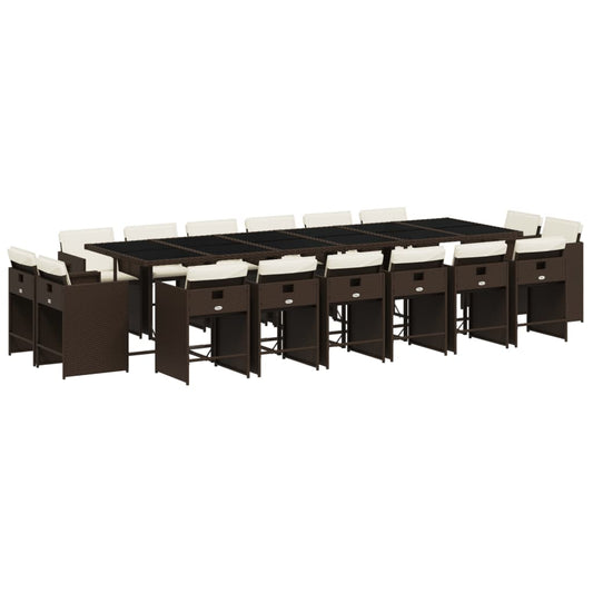 17 pc Garden Dining Set with Brown Polyrattan Cushions