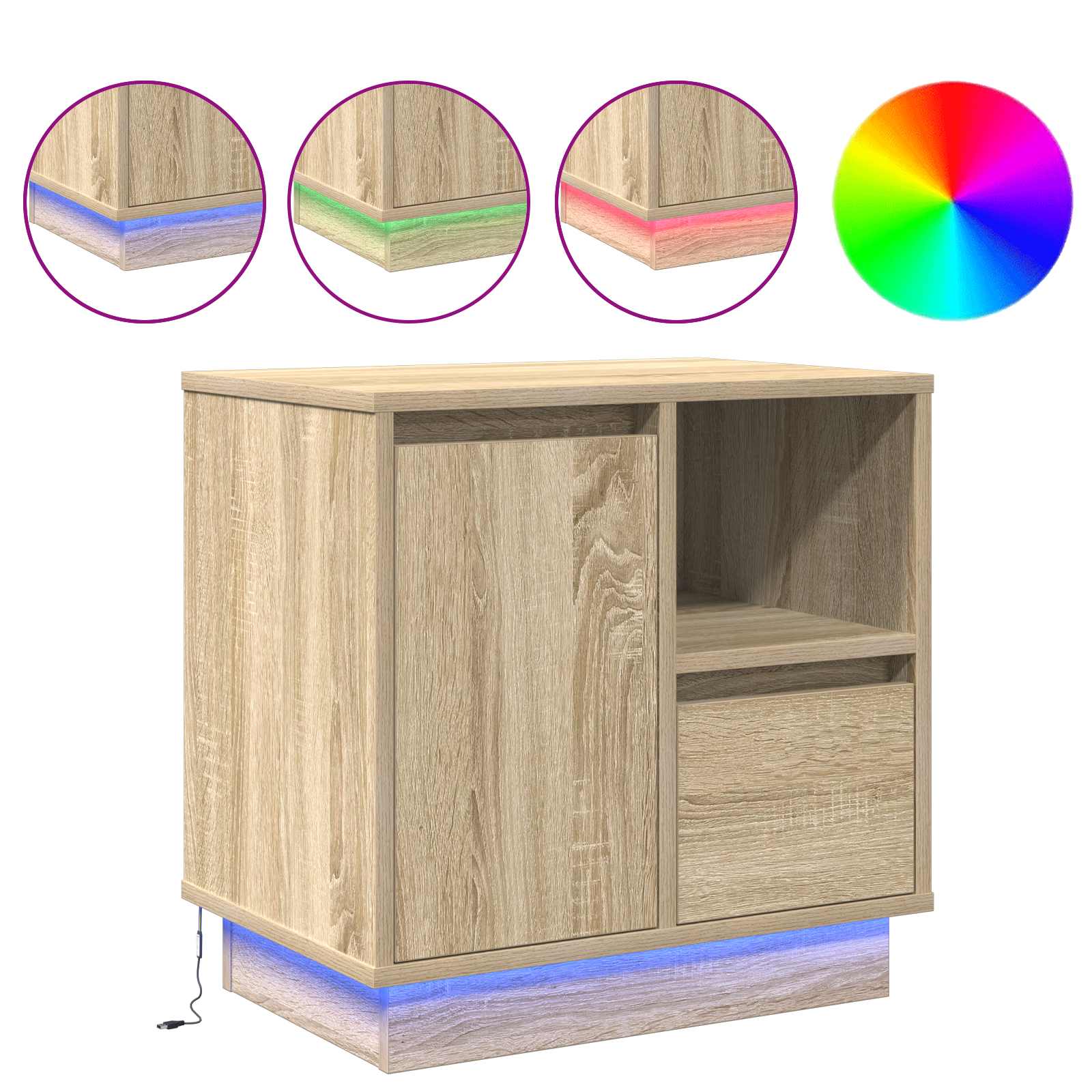 - Luci a LED alimentate da USB Grazie a luci LED a stringa collegate via USB, il comodino illumina delicatamente il tuo spazio. Questa soluzione moderna è efficiente dal punto di vista energetico e aggiunge un tocco di charme alla tua camera.