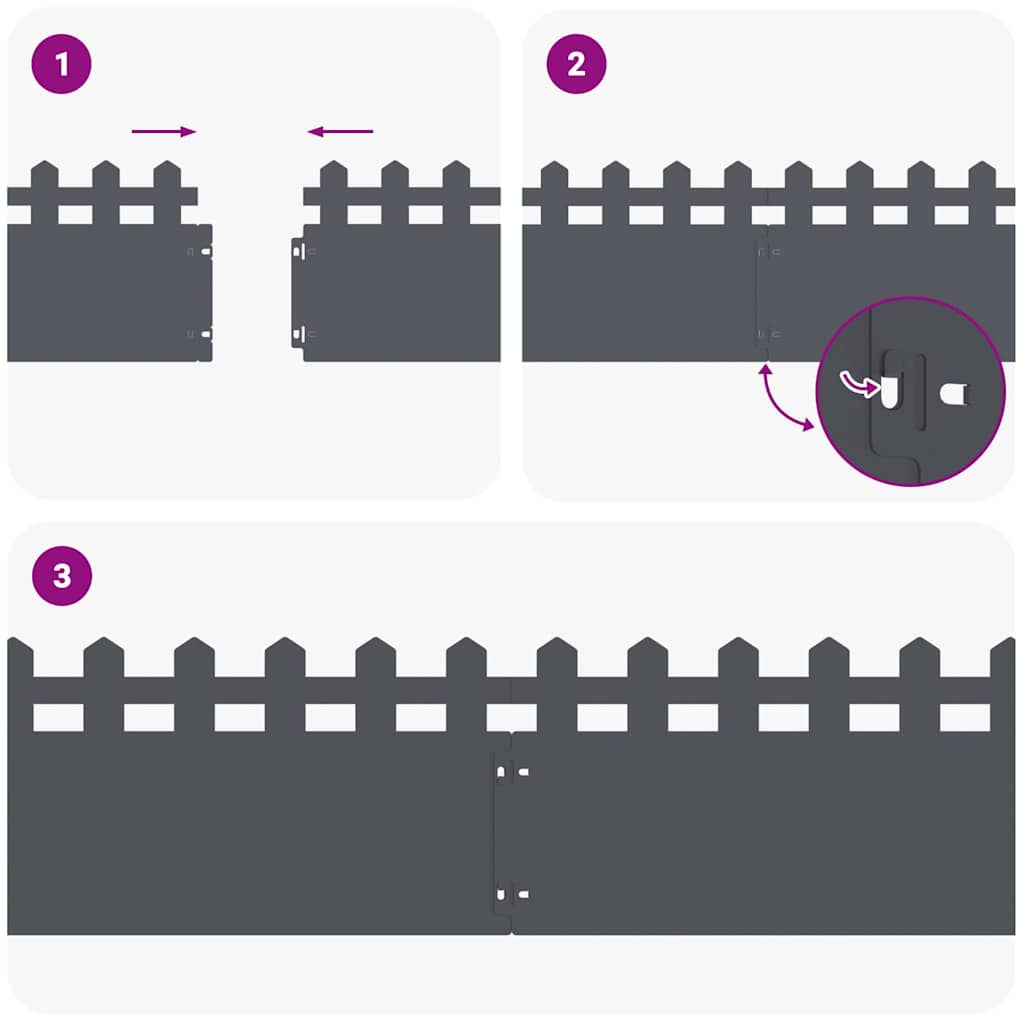 Bordure per prato 20 pcs Antracite 103 x 0,05 x 22 cm Acciaio