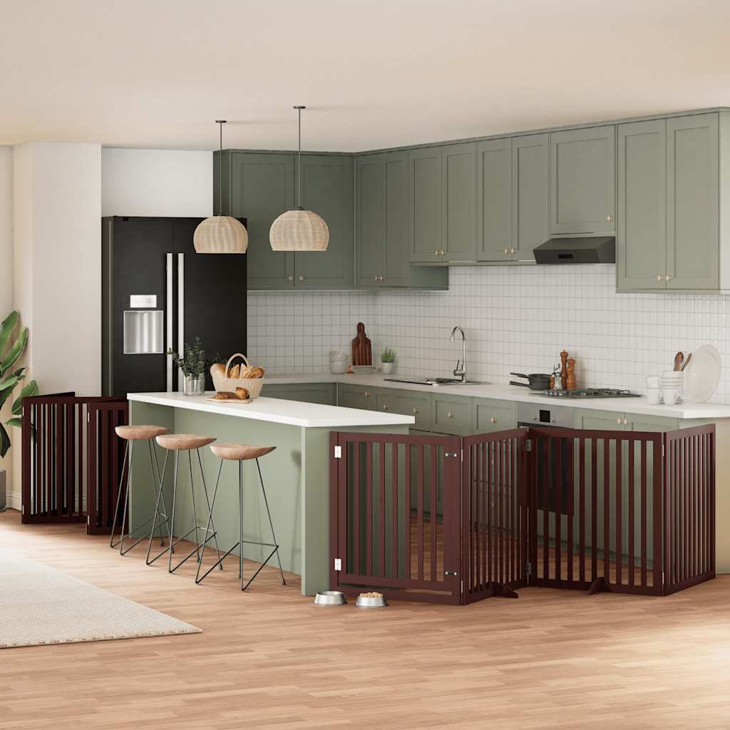 Cancello Cani Porta Pieghevole Marrone 12 Pannelli 960cm Pioppo