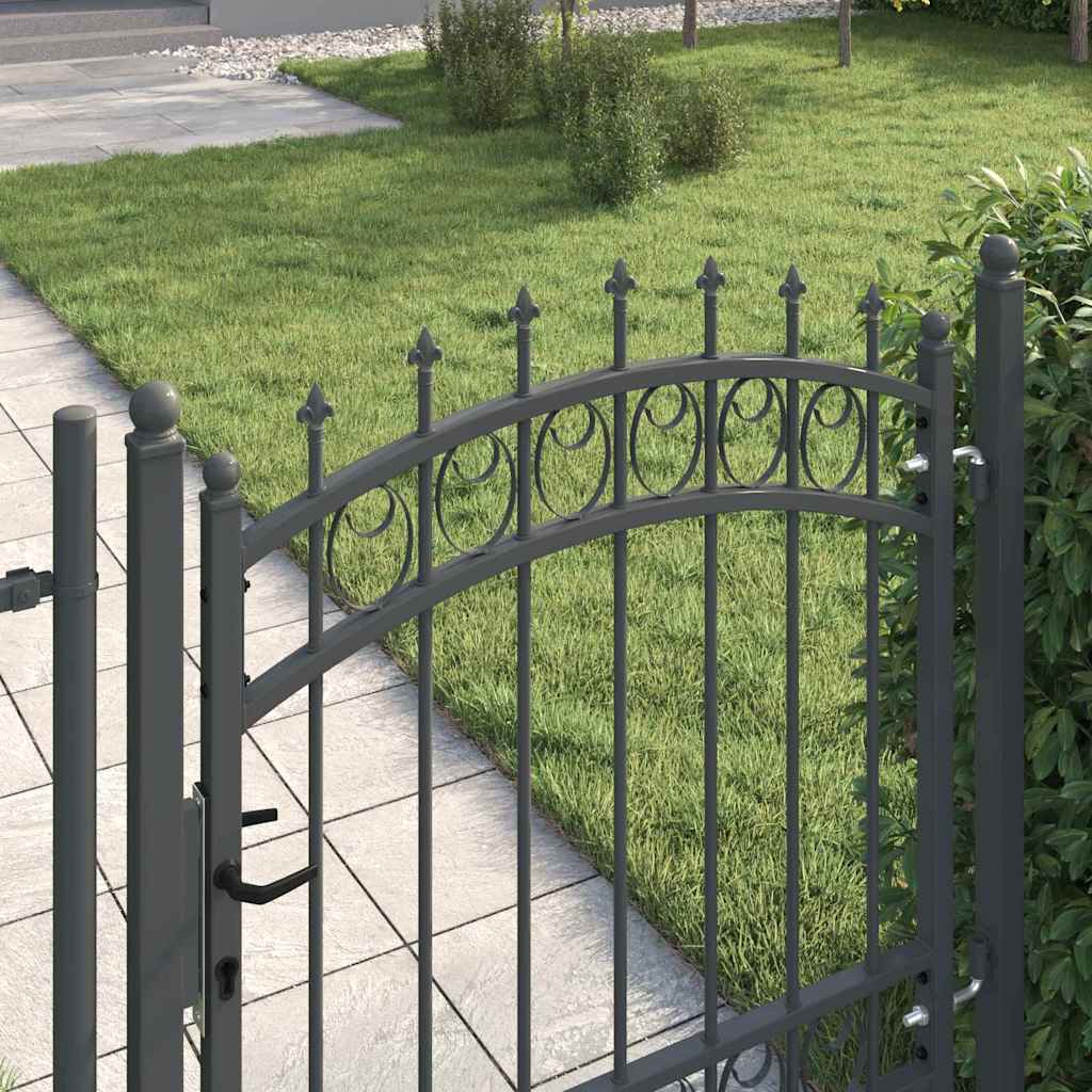 Questo cancello elegante unisce funzionalità e design moderno per qualsiasi spazio esterno. Perfetto per giardini e terrazze, combina uno stile senza tempo con la sicurezza. Costruito in acciaio verniciato a polvere resistente, è solido, resistente alle intemperie e migliora l'aspetto generale dei tuoi spazi. La parte superiore ad arco e le punte affilate danno un tocco di stile, senza compromettere sicurezza e divisione nel giardino.