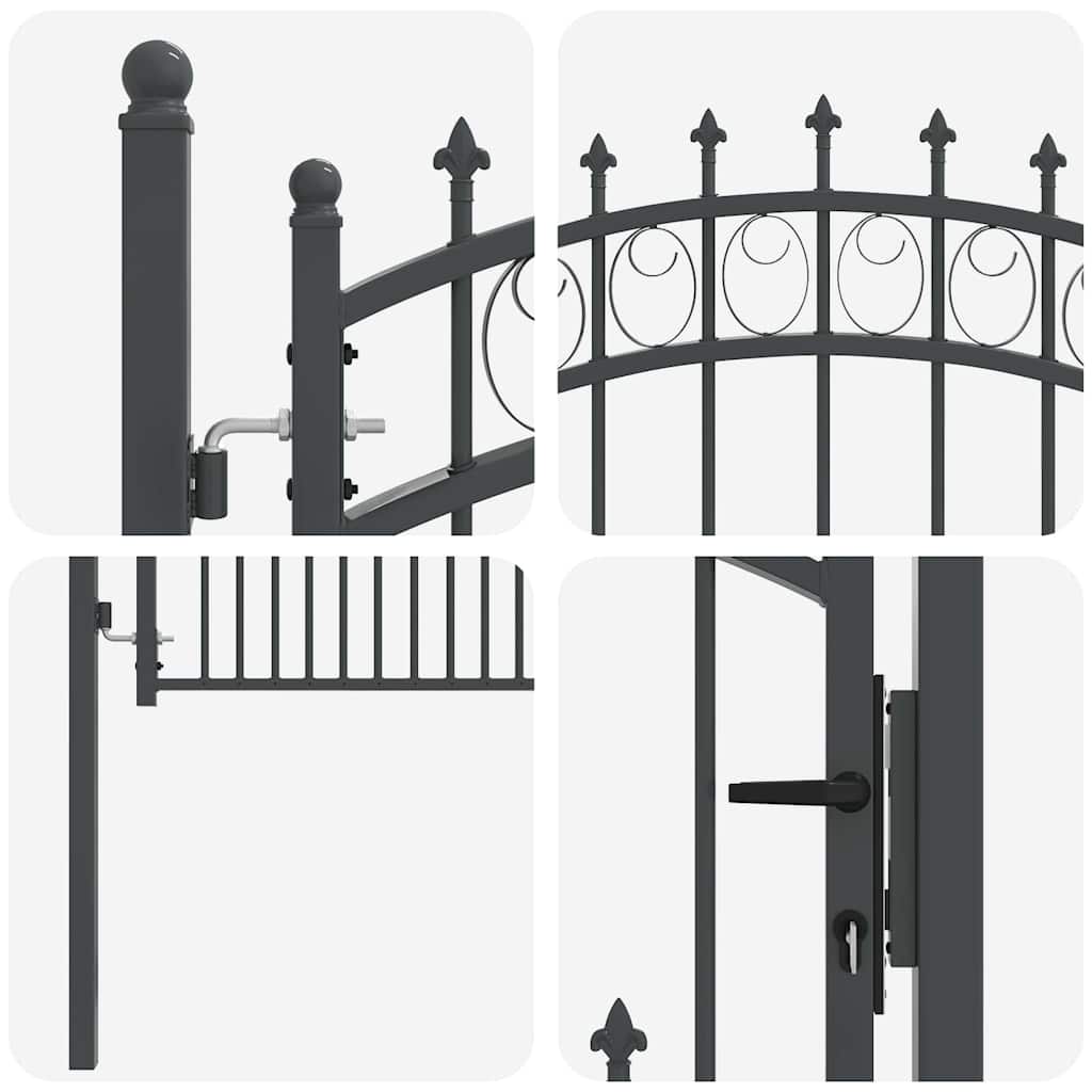 Questo cancello con spuntoni rappresenta la semplicità moderna, con una struttura in acciaio verniciato a polvere dalle linee pulite e pochi fronzoli. È pensato per ambienti esterni come giardini e terrazze, combinando perfettamente stile e praticità. Il design ad arco lo rende non solo funzionale, ma anche un elemento bello per qualsiasi spazio esterno. La costruzione robusta assicura prestazioni affidabili in diverse condizioni atmosferiche.