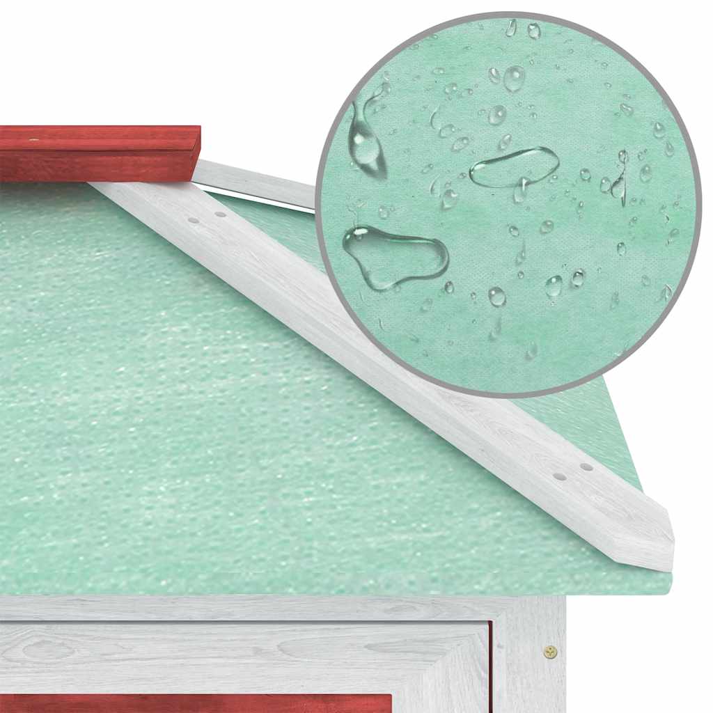 La gabbia per animali è realizzata con un telaio in legno di abete che la rende robusta per anni. Il suo tetto verde protegge dalla pioggia mentre l'ampio riparo è perfetto per dormire. La scala è facile da percorrere e porta dal livello basso al piano superiore. Il vassoio estraibile rende facile la pulizia, mentre le porte si chiudono facilmente. Questa gabbia in legno per conigli è perfetta per i piccoli animali.