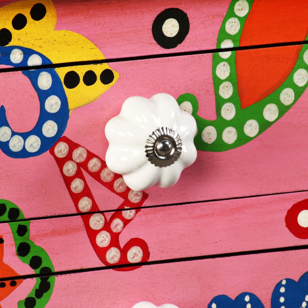 La consolle è realizzata a mano in legno di mango, un materiale resistente ed elegante, ed è lavorata artigianalmente in uno spettacolare stile retrò. È caratterizzata da ricchi dettagli decorativi dipinti a mano che aggiungono un tocco di eleganza e ne sottolineano il look raffinato. I caratteristici pomelli rendono più semplice l'apertura dei cassetti e aggiungono un tocco esclusivo allo stile unico di questo mobile.