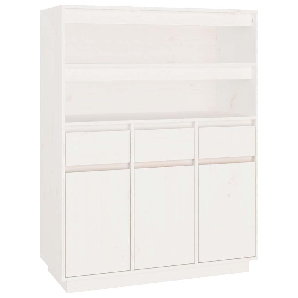 Credenza Bianca 89x40x116,5 cm in Legno Massello di Pino
