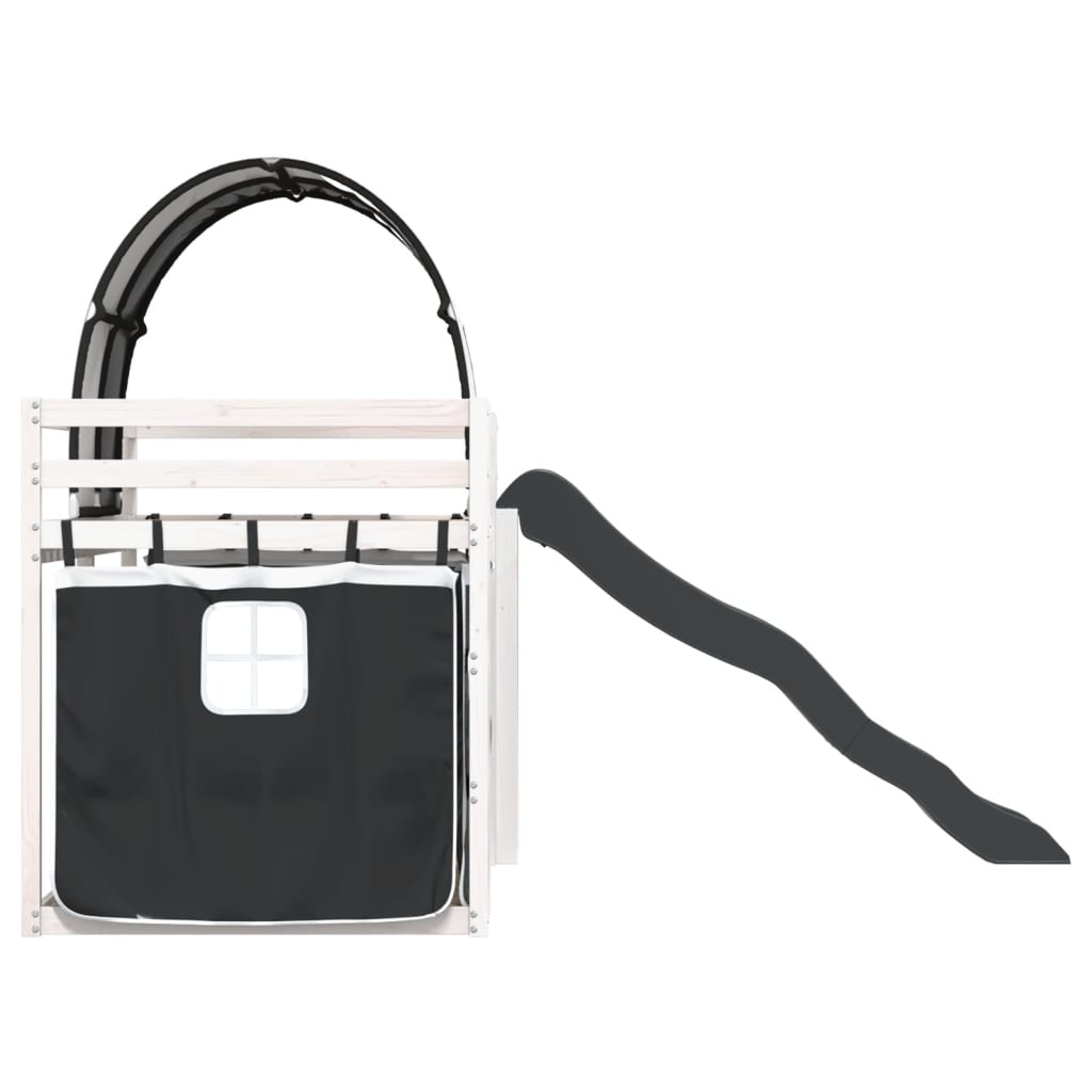 Letto a Castello con Scivolo e Tende Bianco e Nero 80x200 cm