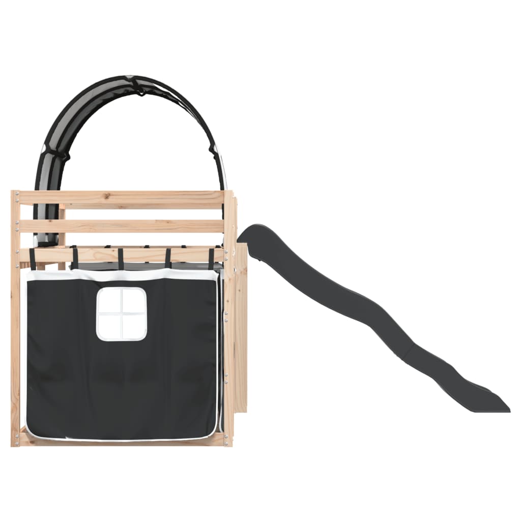 Letto a Castello con Scivolo e Tende Bianco e Nero 90x200 cm