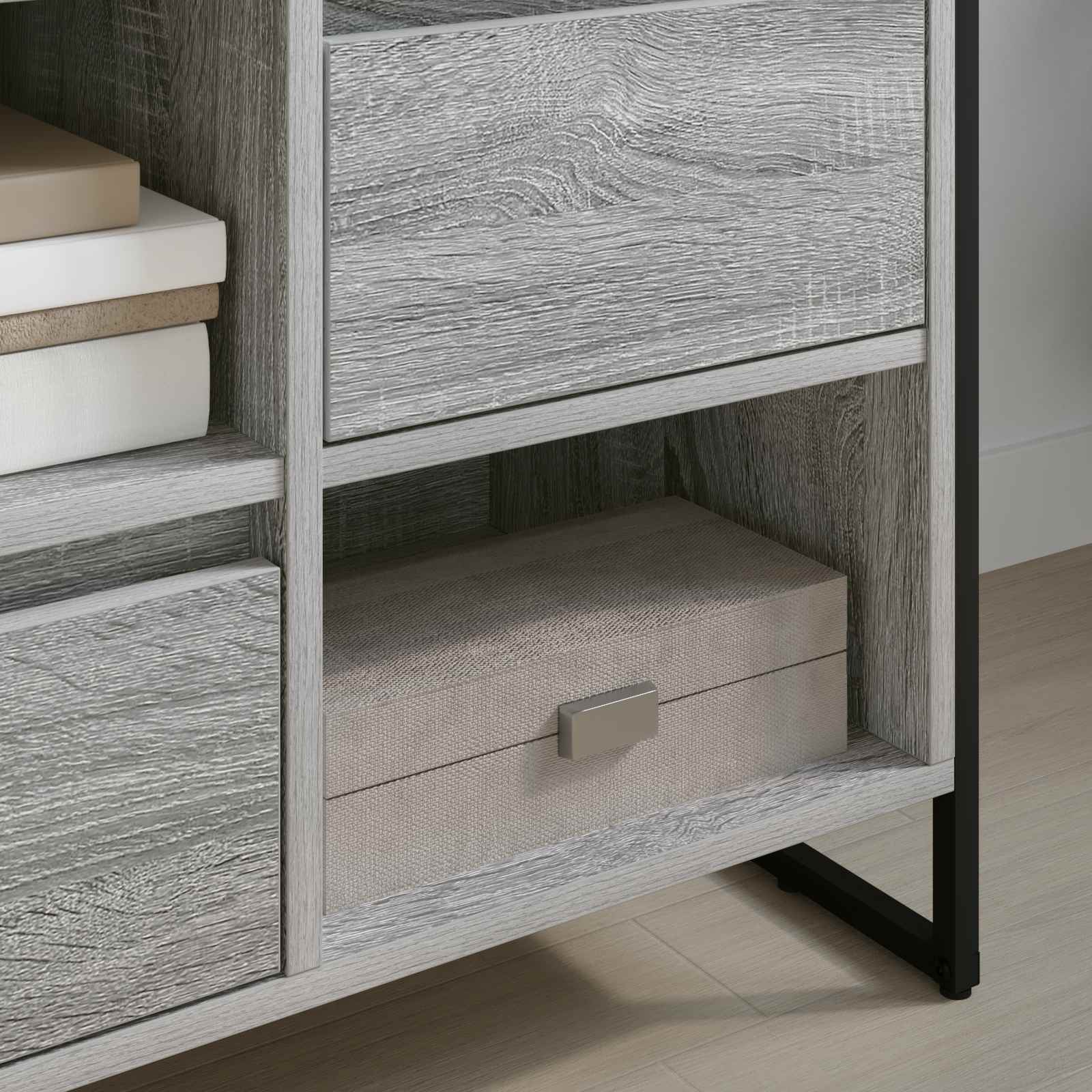 - Stile industriale: Ispirato al design industriale, questo mobile si distingue per l'armonia tra linee pulite e texture grezze. Le gambe in acciaio aggiungono un tocco di solidità, mentre la forma elegante si integra bene con l'estetica moderna, aumentando l'attrattiva visiva della stanza.