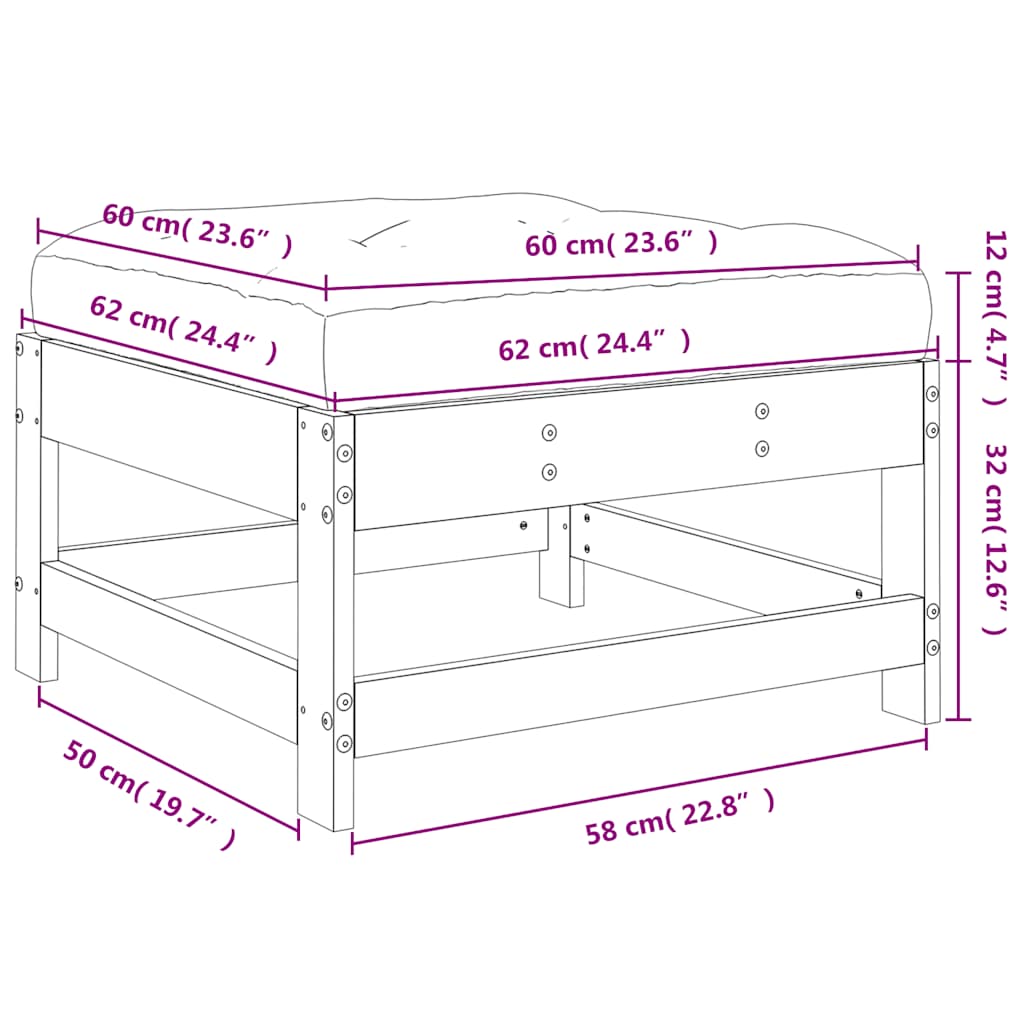 Poggiapiedi da Giardino con Cuscino Legno Massello di Douglas