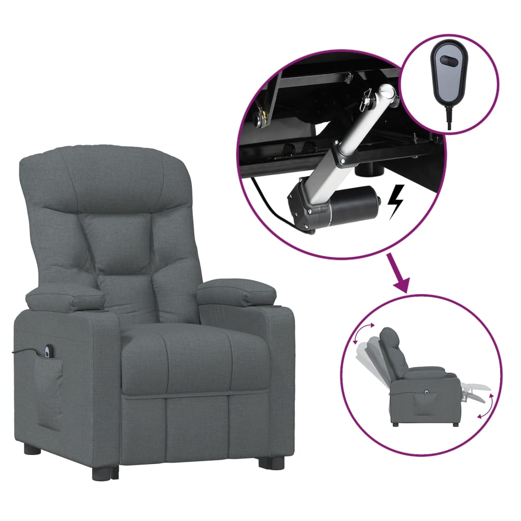 Poltrona Elettrica Reclinabile Grigio Scuro in Tessuto