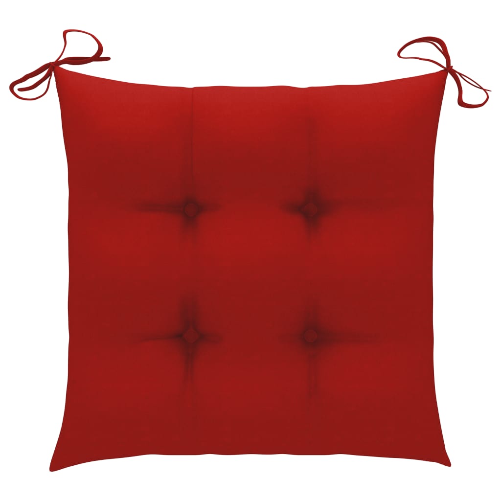 Sedie da Giardino 2 pz con Cuscini Rossi in Teak Massello