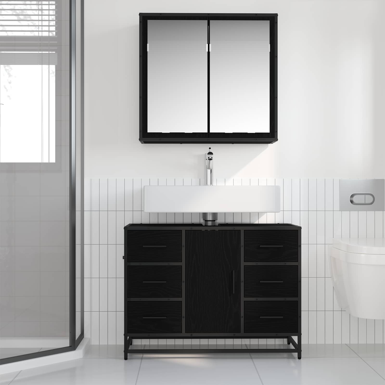 - Semplicità & stile: Design moderno con gambe dritte e maniglie nere lucide crea un look armonioso che si adatta a qualsiasi stile di arredamento, permettendoti di rinnovare il tuo bagno senza fatica.
