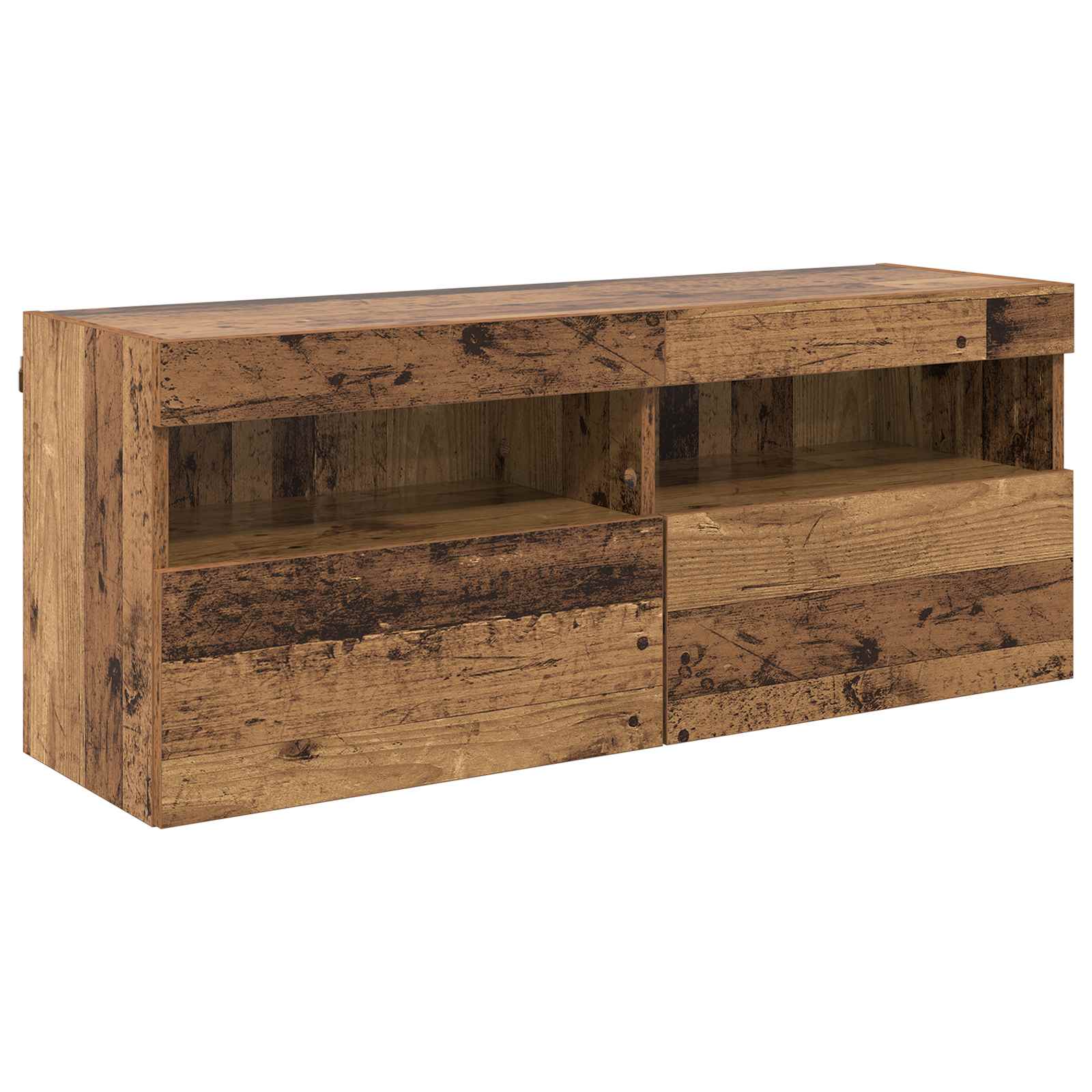 Set Mobile TV a Muro con Luci LED 7 pcs Legno vecchio