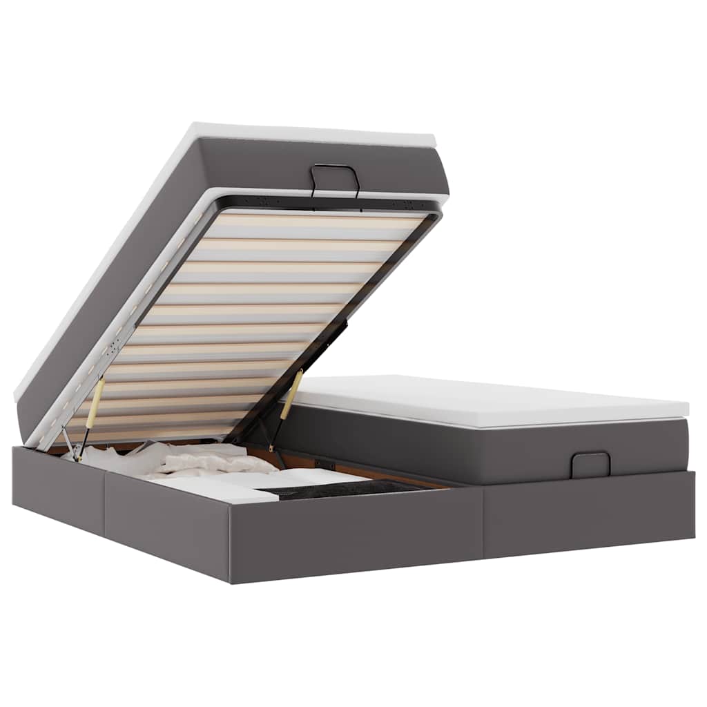 Struttura Letto Pouf con Materassi Grigio 200x200 cm Similpelle