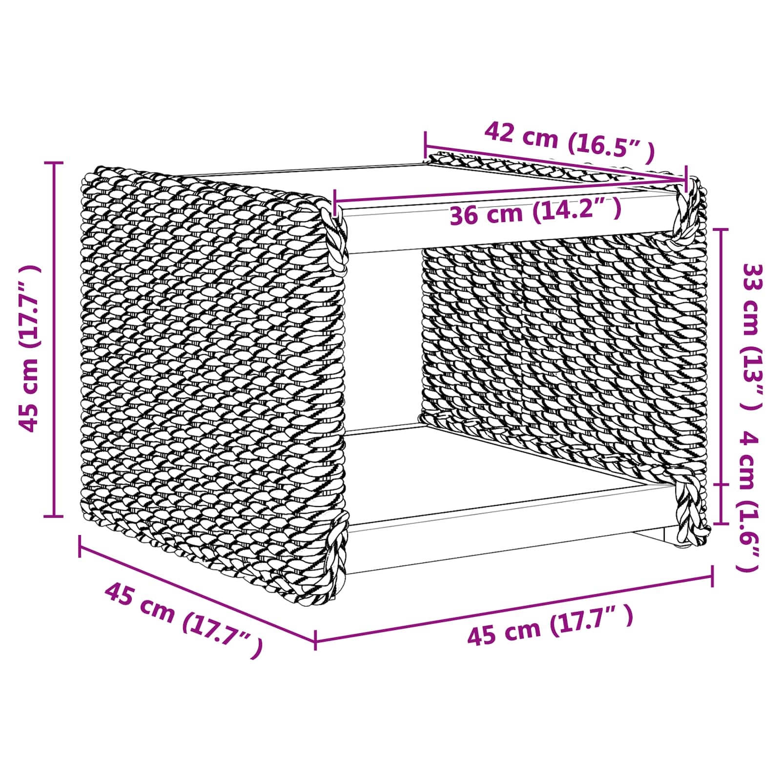- Dimensioni complessive: 44,5 x 45 x 45 cm (L x P x A)