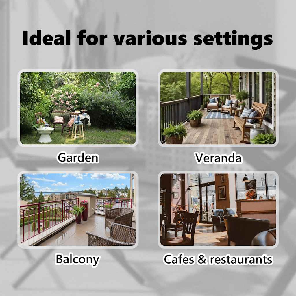 Realizzata in tessuto di qualità con rivestimento in PA, è resistente allo sbiadimento e può bloccare il sole consentendo al contempo il passaggio dell'aria. Può essere facilmente arrotolata su e giù con il sistema azionato a manovella. Questa tenda verticale è dotata di due montanti con altezza regolabile da 2 a 3 m. Può adattarsi alla maggior parte dell'altezza del soffitto e garantire una facile installazione.