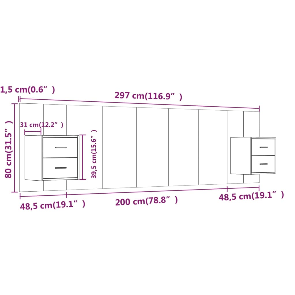 - Dimensioni della testiera: 200 x 1,5 x 80 cm (L x P x A)