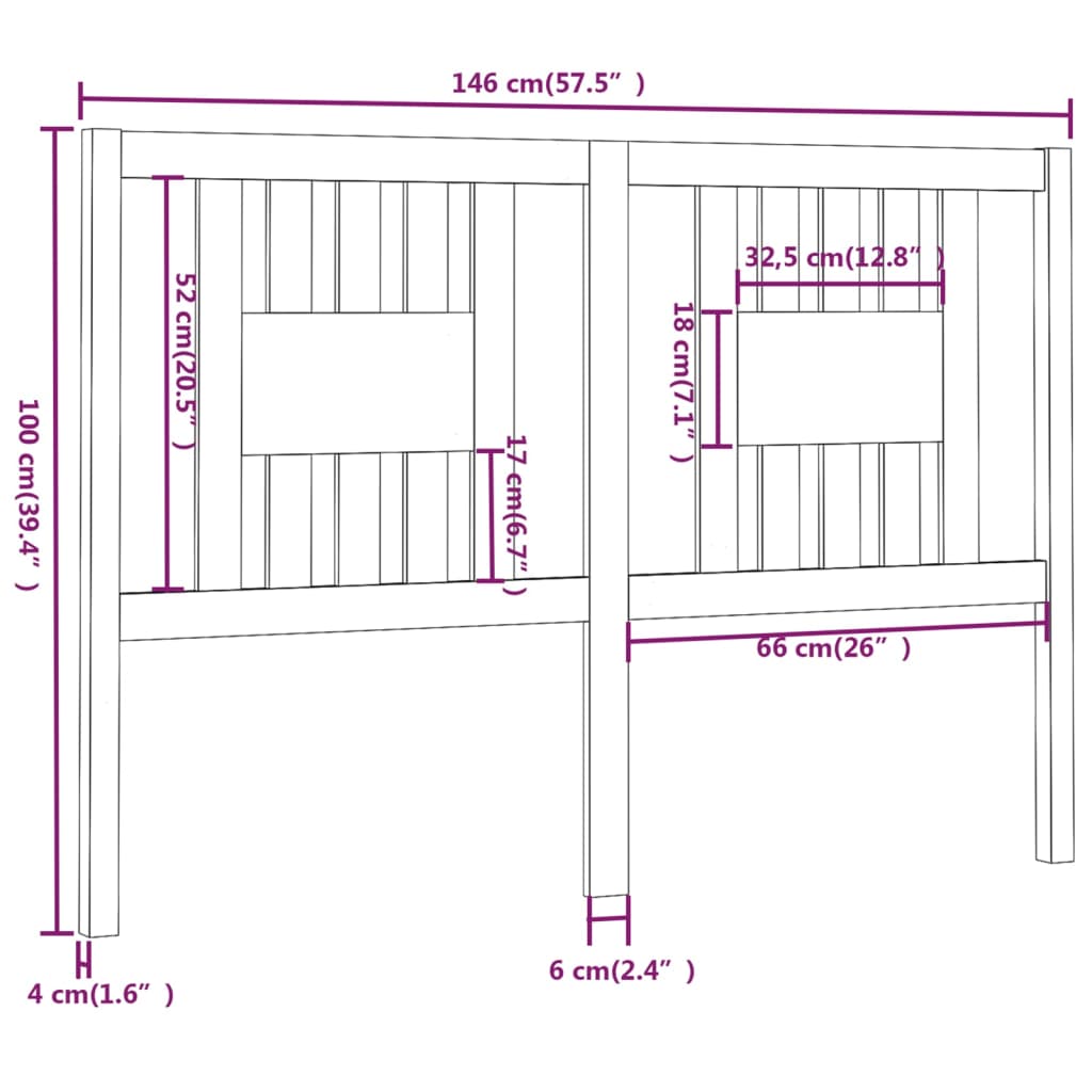 Testiera per Letto Nera 146x4x100 cm in Legno Massello di Pino