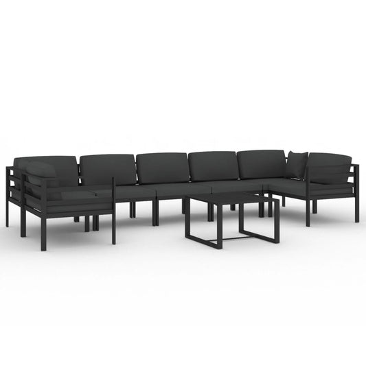 Set Divani da Giardino 8 pz con Cuscini in Alluminio Antracite