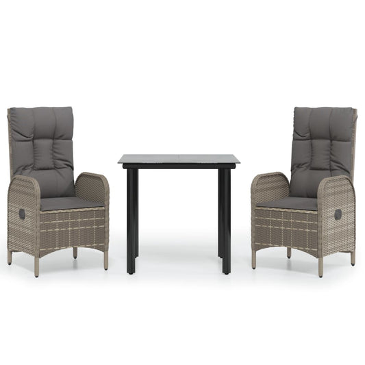 Set Salotto Giardino 3 pz con Cuscini Nero e Grigio Polyrattan