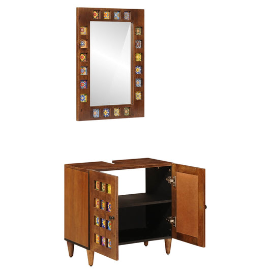 Set di mobili per il bagno 2 pcs Noce Legno di mango massello