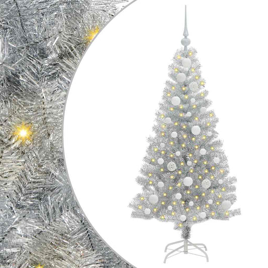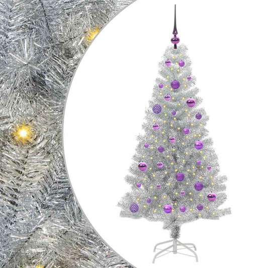 Albero di Natale con 150 LED con supporto Argento 120 cm PET