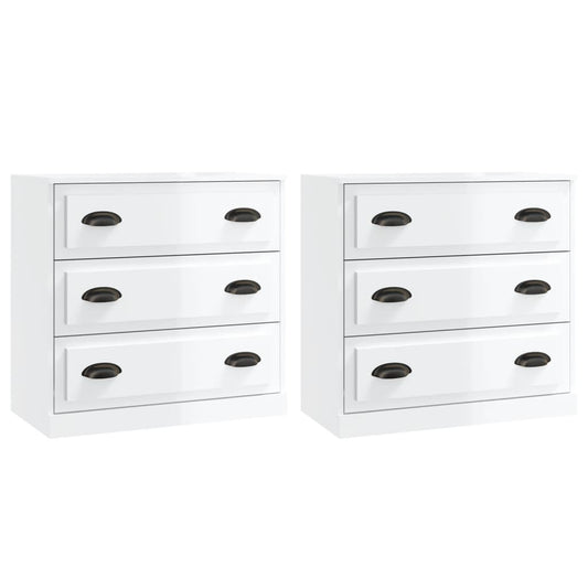 Credenze 2pz Bianco Lucido 60x35x70 cm in Legno Multistrato