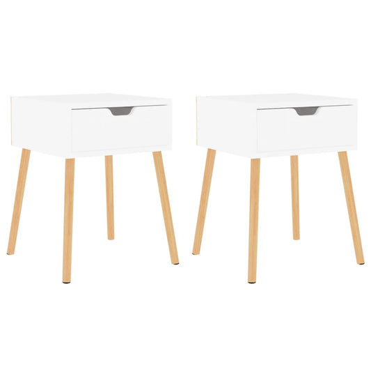 2pcs White Bedside Tables 40x35x50 cm in Multilayer Wood