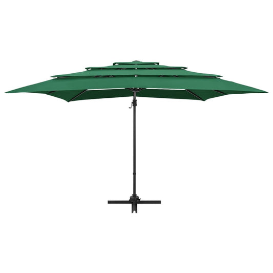 Ombrellone a Sbalzo 4 Livelli Palo Alluminio Verde 3x3 m