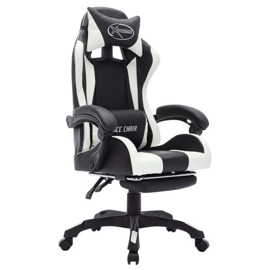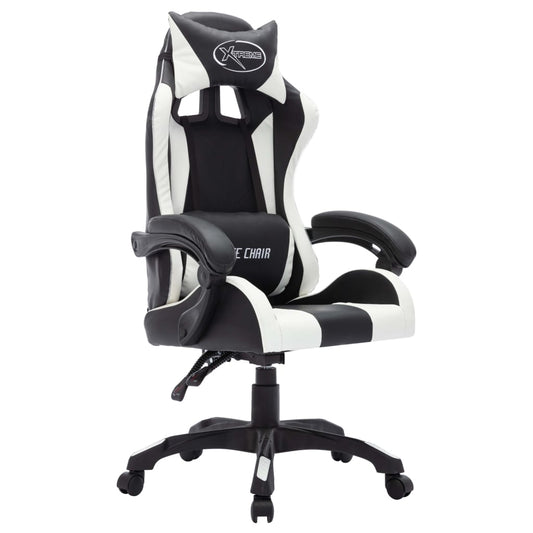 Gaming Chair with White and Black RGB LED Lights in Faux Leather
