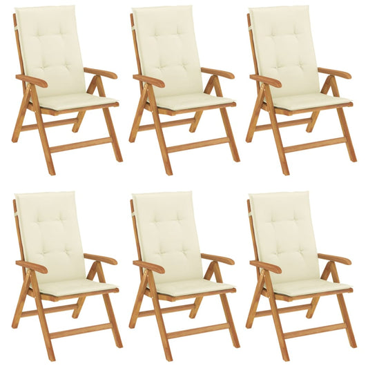 Sedie da Giardino Reclinabili con Cuscini 6 pz in Legno di Teak