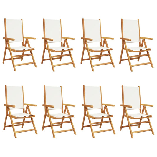 Sedie da Giardino Reclinabili 8pz Bianco Crema Tessuto e Legno