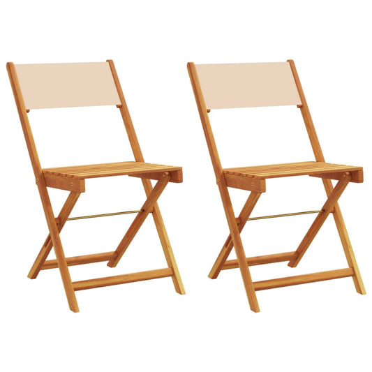 Sedie da Bistrò 2pz Beige in Legno Massello di Acacia e Tessuto